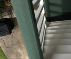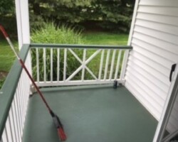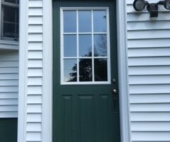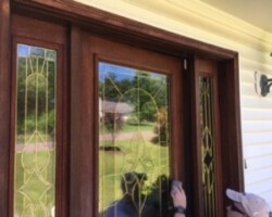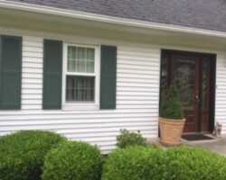 A timeless color update can completely transform a home’s curb appeal, and that’s exactly what we achieved for this Dallas project. Our team at Wyoming Valley Painting carefully sanded and stained the front door and sidelights in a rich mahogany finish, bringing warmth and character back to the entryway. Every trace of green around the exterior—from shutters and trim to the porch and foundation—was refreshed with a bold black paint that gave the home a crisp, modern contrast. We also repaired old hardware holes in the garage doors to restore a seamless, finished look. The result is a refined exterior that stands out for all the right reasons.