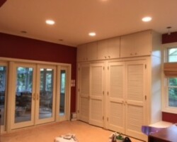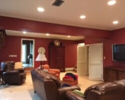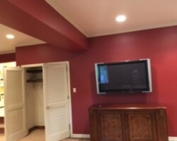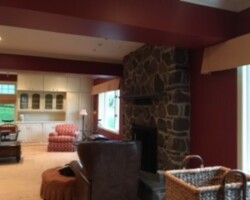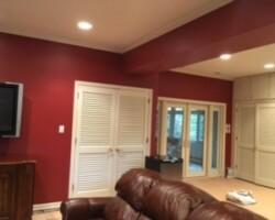 This cozy Dallas, Pennsylvania home received a beautiful refresh that brightened the entire space with clean lines and modern color. Wyoming Valley Painting updated the family room and bathroom, making needed repairs before painting the walls, ceilings, trim, doors, and built-ins. The homeowner chose a soft greige for the walls, a perfect balance of gray and beige that pairs nicely with crisp white ceilings and glossy trim. Careful prep work included repairing ceiling damage and patching old intercom openings to ensure a smooth, lasting finish. The result is a warm, inviting atmosphere that feels polished yet comfortable throughout the home.