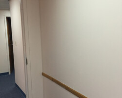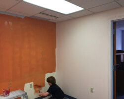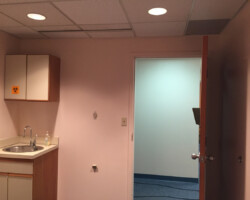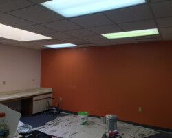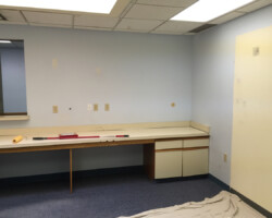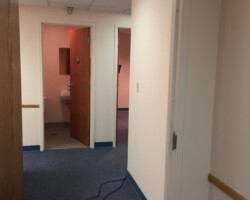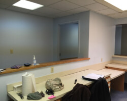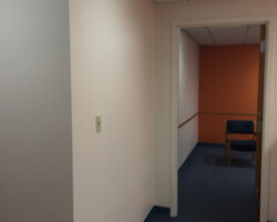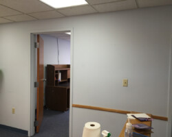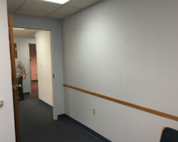Wyoming Valley Painting recently completed a professional interior painting project for a doctor’s office in Hazleton, Pennsylvania, featuring a refined two-tone wall design. The updated space showcases a light, neutral shade on the upper walls paired with a subtly deeper tone below, separated by a crisp horizontal line. This classic two-tone approach not only adds visual interest and depth but also creates a calming, welcoming environment ideal for both patients and staff. The clean transition between colors, complemented by white drop ceiling tiles and neutral trim, reflects meticulous craftsmanship and attention to detail. This color scheme aligns with current best practices for healthcare interiors, promoting comfort, reducing stress, and enhancing the overall patient experience in Hazleton’s vibrant Pocono Mountain region.