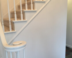 Wyoming Valley Painting refreshed this Kingston home with a professional interior painting project that brightened both the main living area and staircase, using light, neutral wall colors and crisp white accents to create a clean, airy atmosphere. The updated spaces showcase smooth, even finishes and meticulous attention to detail, with the staircase’s white walls and railing enhancing natural light and the living area’s soft tones complementing the home’s classic architectural features. This transformation reflects Kingston’s blend of historic charm and modern design trends, where warm neutrals and nature-inspired palettes are favored for their ability to foster comfort, openness, and timeless appeal in local homes.